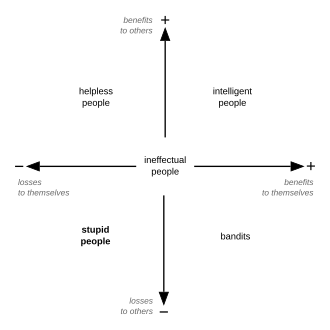 Uma pessoa estúpida é uma pessoa que causa perdas a outra pessoa ou a um grupo de pessoas enquanto ela mesma não obtém ganho algum e até possivelmente incorre em perdas.